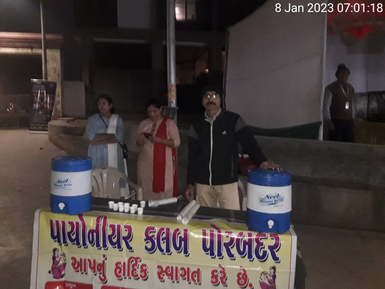 પોરબંદર માં સેવાકીય કાર્યોમાં સદા અગ્રેસર એવી સંસ્થા પાયોનિયર ક્લબ પોરબંદર,પાયોનિયર લેડીઝ વીંગ અને સાગરપુત્ર સમન્વય પોરબંદર આ આયોજનમાં સહયોગી સંસ્થા તરીકે જોડાઈને સેવાકીય પ્રવૃત્તિ અંતર્ગત કોરોનાની મહામારી અને શિયાળાની ફૂલ ગુલાબી ઠંડીની ઋતુમાં તા.8/1/2023 ને રવિવારે સવારે 6:00 થી 10:00 વાગ્યે સુધી જુદા-જુદા રાજ્યોમાંથી આવેલા તરણ સ્પર્ધકોને આવકાર્યા હતા અને ચોપાટી ખાતે આવેલ સર્વે સ્પર્ધકો તથા શહેરીજનોની રોગપ્રતિકારક શક્તિ માટે ઉકાળા/રજવાડી કાવાનું વિતરણ કરવાનું આયોજન કરવામાં આવ્યું હતુ.આ ઉકાળા/રજવાડી કાવાનું વિતરણ 700 જેટલા વ્યક્તિઓને કરવામાં આવ્યું હતુ.આ ઉકાળા/રજવાડી કાવાનું વિતરણમાં જિલ્લા આયુર્વેદ અધિકારીશ્રી.પોરબંદર નો પણ સહયોગ મળેલ છે તે બદલ બદલ ક્લબના પ્રમુખશ્રી એ તેમનો આભાર વ્યક્ત કરેલ છે.
