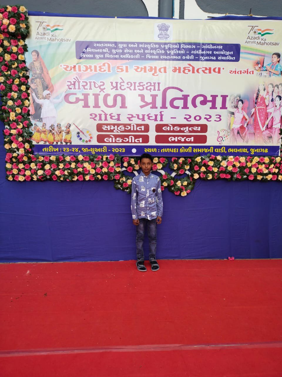 રમત ગમત, યુવા અને સાંસ્કૃતિક પ્રવુતિઓ વિભાગ ગાંધીનગર અને કમિશનરશ્રી, યુવક સેવા અને સાંસ્કૃતિક પ્રવૃત્તિઓ ગાંધીનગર આયોજિત આઝાદી કા અમૃત મહોત્સવ અંતર્ગત સૌરાષ્ટ્ર પ્રદેશકક્ષા બાળ પ્રતિભા શોધ સ્પર્ધા 2023 તા. 24.01.23 ના રોજ જૂનાગઢ મુકામે યોજાઈ ગયેલ હતી.