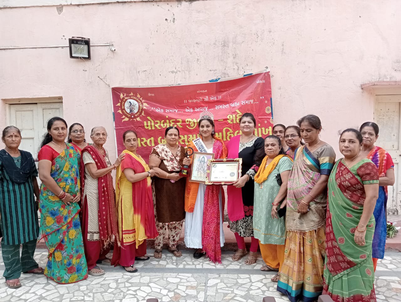 ઈન્ડિયા વર્લ્ડ શો માં મિસ વર્લ્ડ બનેલ બ્રહ્મ સમાજની દીકરીનું પોરબંદર જિલ્લા સમસ્ત બ્રહ્મ સમાજ મહિલાઓ દ્વારા કરાયુ સન્માન