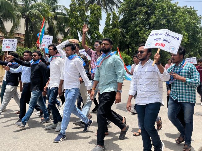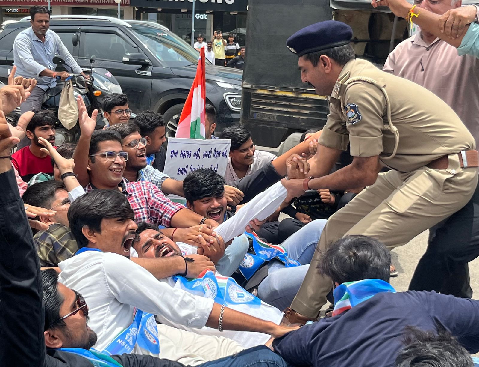 આજે ગુજરાત પ્રદેશ NSUI મહાંમત્રી કિશન રાઠોડ,જયદિપ સોલંકી,રાજ પોપટ,ઉમેશરાજ બારૈયા,દિવ્યેશ સોલંકી,યશરાજ ચુડાસમા,ચિરાગ વદર,ચિરાગ ચાંચિયા,હિતેશ હુંણ,યશ ઓઝા,જયમલ ચેલાર,હિરેન મેઘનાથી,અકિબખાન પઠાણ,ફેઇઝલ,અક્ષય દવે,હરિત શાહ,સાહિલ વાજા,પાર્થ વરવાડિયા,દેવા ઓડેદરા,નિકેત,કેવલ,રુદ્ર,સાહિલ,નિખિલ સહિતની અટકાયત કરવામા આવી હતી