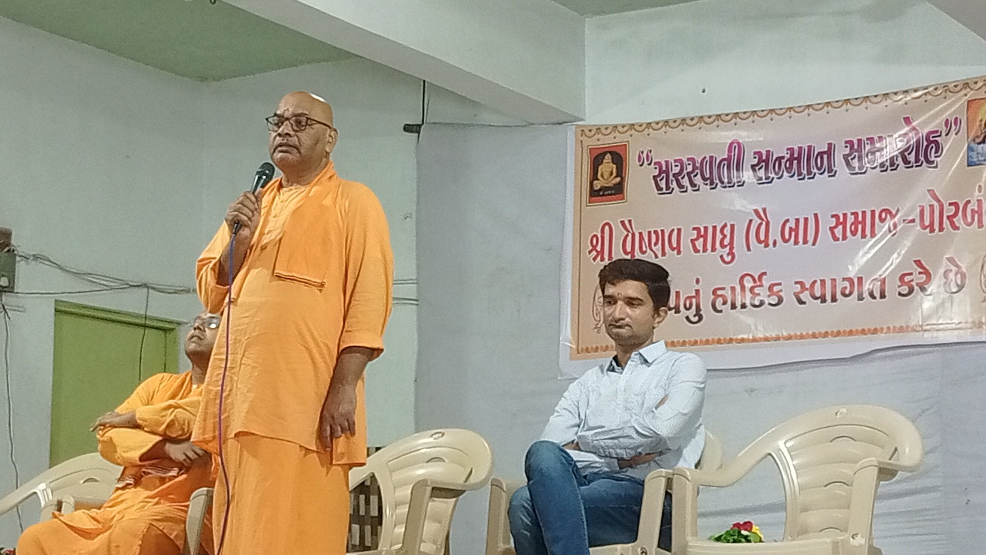 શ્રી વૈષ્ણવ સાધુ સમાજ પોરબંદર દ્વારા યોજાયેલ આ સરસ્વતી સન્માન સમારોહમાં સૌપ્રથમ કાર્યક્રમમાં ઉપસ્થિત રામકૃષ્ણ મિશન પોરબંદરના સ્વામી પ્રેષ્ઠાનંદજી અને સ્વામી ચિરંતનાનંદજી તથા પોરબંદર પોલીટેક્નિકલ કોલેજ ના પ્રોફેસર ધીરેન ભાઈ ગોંડલિયાનું આયોજન સમિતિ દ્વારા પુષ્પ ગુચ્છ દ્વારા સ્વાગત કરવામાં આવ્યું હતું અને મંચસ્થ મહાનુભાવો દ્વારસ દીપ પ્રાગટય કરી કાર્યક્રમ ની શરૂઆત કરવામાં આવી હતી. ત્યારબાદ ઉપસ્થિત સૌ એ સમૂહ હનુમાન ચાલીસા પાઠ કર્યા હતા. પોલીટેકનીકલ કોલેજ ના પ્રોફેસર ધીરેન ભાઈ ગોંડલિયાએ વક્તવ્ય રજૂ કર્યું હતું જેમાં વિદ્યાર્થીઓને જીવનમાં શિક્ષણનું મહત્વ સમજાવ્યું હતુ .આ ઉપરાંત રામકૃષ્ણ મિશન ના સ્વામી પ્રેષ્ઠાનંદજી એ વિદ્યાર્થી જીવનમાં કેવી રીતે સદગુણો વિકસાવવા અને સારી સંગતી કરી વિદ્યાર્થી ઓને પ્રેરણાત્મક પ્રસંગ રજૂ કર્યો હતો .આ ઉપરાંત સ્વામી ચિરંતાનંદજી એ પોરબંદર માં સ્વામી વિવેકાનંદ મેમોરિયલના ઇતિહાસ અંગે જણાવી સ્વામી વિવેકાનંદના વિચારો જીવન માં ઉતારી સ્વામી વિવેકાનંદ જેવા બની સમાજ અને દેશ પ્રત્યે રાષ્ટ્ર ભાવના ઉજાગર કરવા વિદ્યાર્થીઓ ને પ્રેરિત કર્યા હતા .અને સ્વામી વિવેકાનંદ દેશને આઝાદી આપાવનાર સ્વતંત્રતા સંગ્રામ ના ક્રાંતિકારીઓના પણ પ્રેરણા સ્ત્રોત હતા તેમ જણાવ્યુ હતું