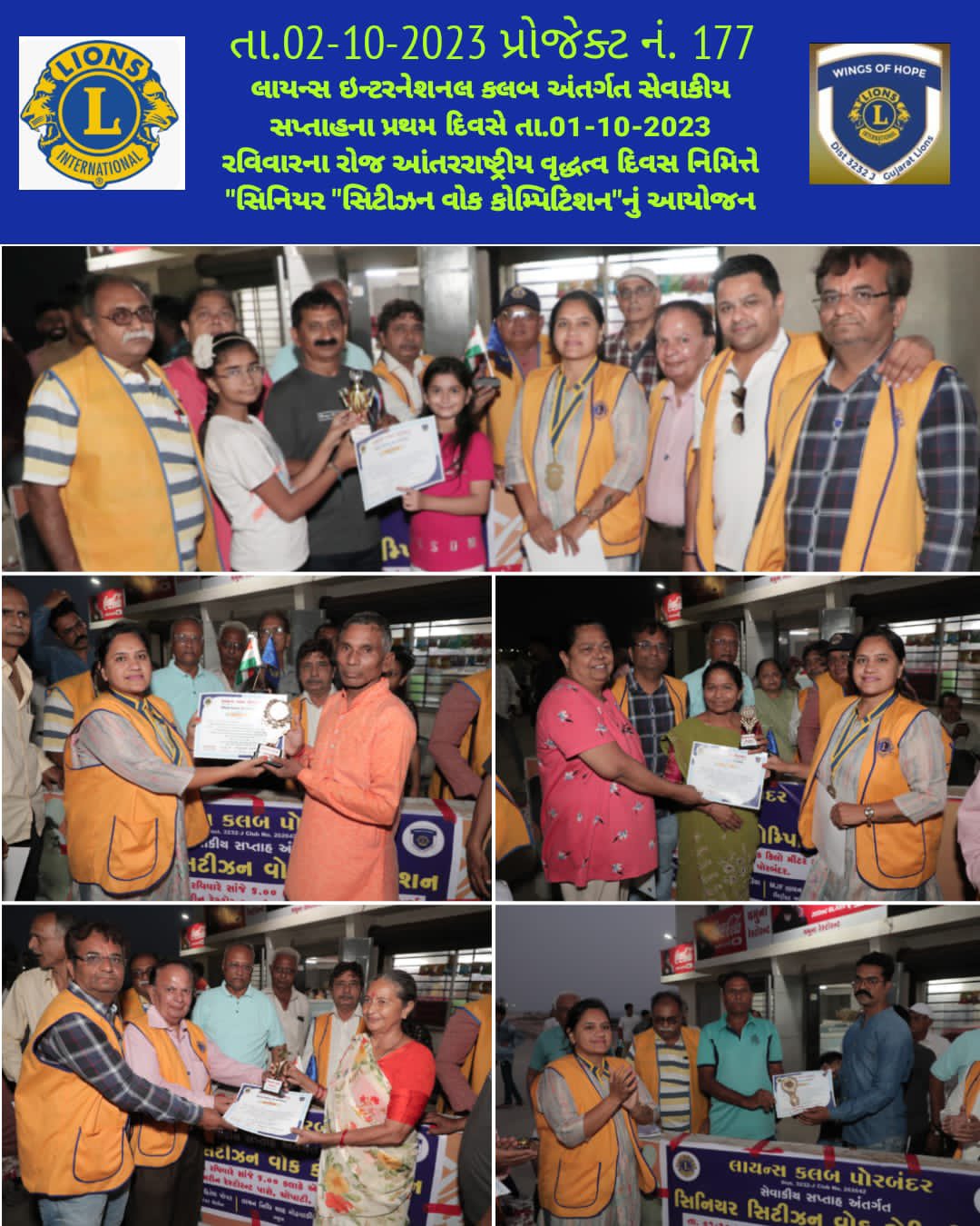 લાયન્સ ઇન્ટરનેશનલ કલબના પ્રમાણે સેવાકીય સપ્તાહના પ્રથમ દિવસે આંતરરાષ્ટ્રીય વૃદ્ધત્વ દિવસ નિમિતે સિનિયર “સિટીઝન વોક કોમ્પિટિશન”નું આયોજન કરવામાં આવ્યું…
