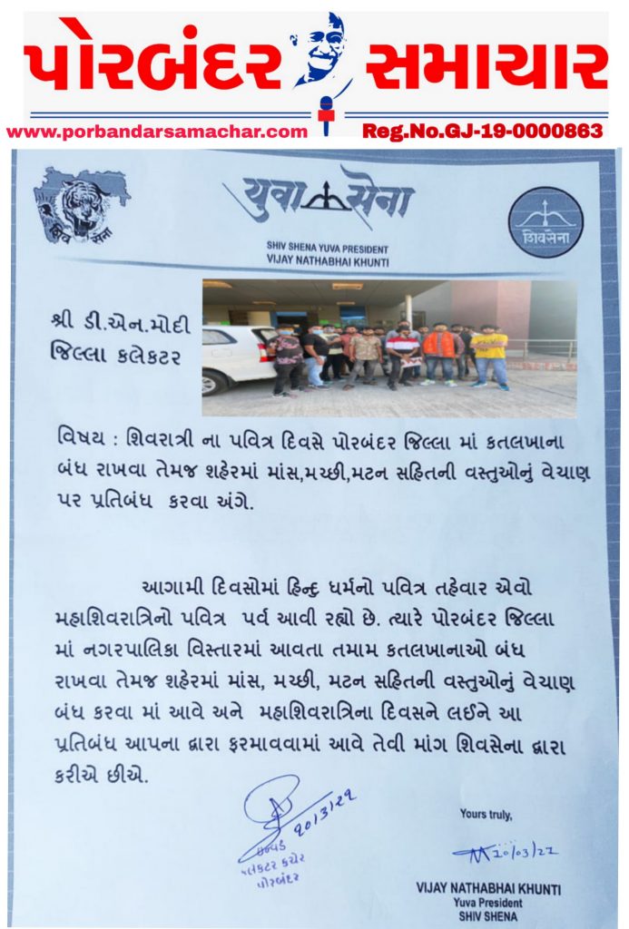 HomePorbandarશિવરાત્રી ના પવિત્ર દિવસે પોરબંદર માં કતલખાના બંધ કરવા જિલ્લા કલેક્ટર ને શિવસેના ની માંગ nimeshgMar 10, 2021 0 Please follow and like us: Spread the love CATEGORIES PorbandarAUTHORnimeshg