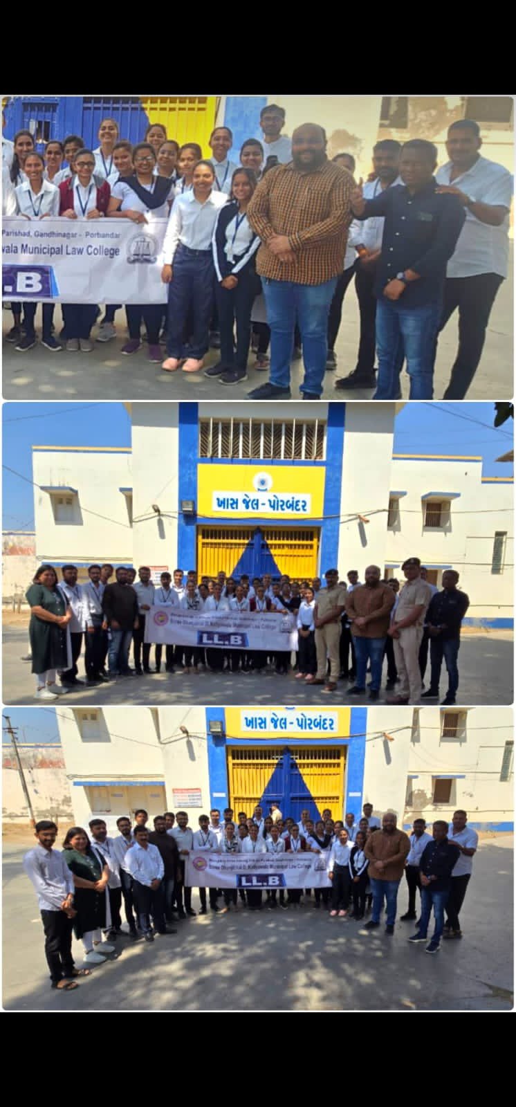 આજરોજ તારીખ 27/02/2024 મંગળવારના રોજ શ્રી સત્સંગ શિક્ષા પરિષદ સંચાલિત, શ્રી ધનજીભાઈ ડી કોટિયાવાલા મ્યુનિસિપલ લો કોલેજ ના વિદ્યાર્થીઓ તથા સ્ટાફે પોરબંદર ખાસ જેલ ની મુલાકાત લીધી હતી. કાયદાના વિદ્યાર્થીઓ હોવાના કારણે જ્યારે વકીલાત કરશે ત્યારે જેલની અંદર કેદીઓ સાથે મુલાકાત કેવી રીતે કરી શકે, કેદીઓને મળતી અલગ અલગ સુવિધાઓ તેમજ જેલના નિયમો, તેમજ કેદીઓ માટે ફર્લો પેરેલ, સાદી પેરોલ તેમજ વચગાળાના જામીન વિશે માહિતી મેળવી હતી. આ બધી માહિતી મેળવીને કાયદાના સ્તનાતક વિદ્યાર્થીઓએ ભવિષ્યમાં પોતાની પ્રેક્ટિસ સારી કરી શકે તે માટેનું કોલેજ દ્વારા આ પ્રેક્ટીકલ જેલ વિઝીટનુ સરસ આયોજન કરવામાં આવેલ હતું.