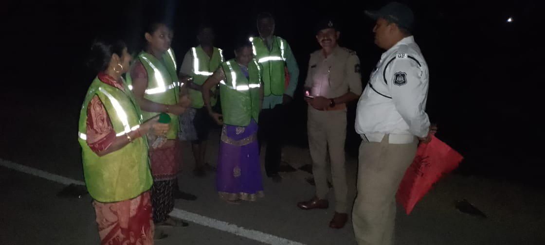 પોરબંદર-દ્રારકા હાઈવે પર હર્ષદ પગપાળા ચાલીને જતા યાત્રાળુઓને રિફલેકટીવ જેકેટ ટ્રાફિક પોલીસ દ્વારા આપવામાં આવ્યા
