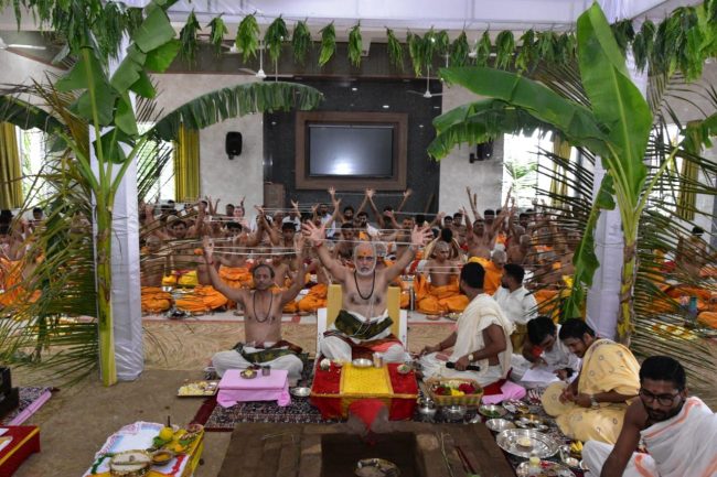સાંદીપનિ વિદ્યાનિકેતન સંકુલના છાત્રાલયમાં સવારે ૮:૩૦ વાગ્યેથી પૂજ્ય ભાઇશ્રીની પાવન ઉપસ્થિતિમાં વૈદિક રિચ્યુલ ટીમ દ્વારા વેદોક્ત શાસ્ત્રોકત વિધિવિધાન સાથે હેમાદ્રિ સંકલ્પ પૂર્વક દશવિધિસ્નાનની વિધિ સંપન્ન કરવામાં આવી.