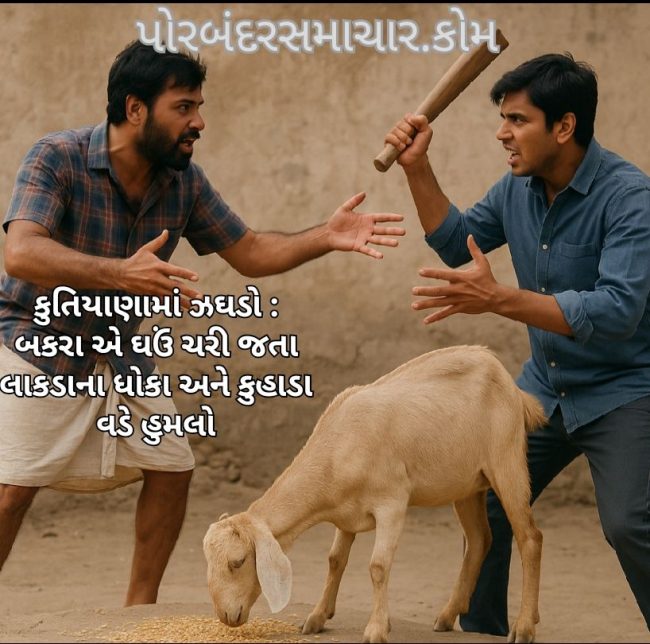 ફરિયાદી વૈદેભાઈ રામભાઈ ખુંટી (ઉંમર ૨૮, જાતિ મેહર, ધંધો ટ્રક ડ્રાઈવિંગ, રહે. કુતિયાણા-માંઝાપરા સરકારી આવાસ) એ કુતિયાણા પોલીસ મથકે નોંધાવેલી ફરિયાદ મુજબ, વૈદેભાઈ રામભાઈ ખુંટીના મકાનની ઉપર રહેતા મનીષભાઈ ભટ્ટીના બકરાએ આશરે આઠેક દિવસ પહેલા ગીગાભાઈના ઘઉં ખાઈ ગયો હતો.