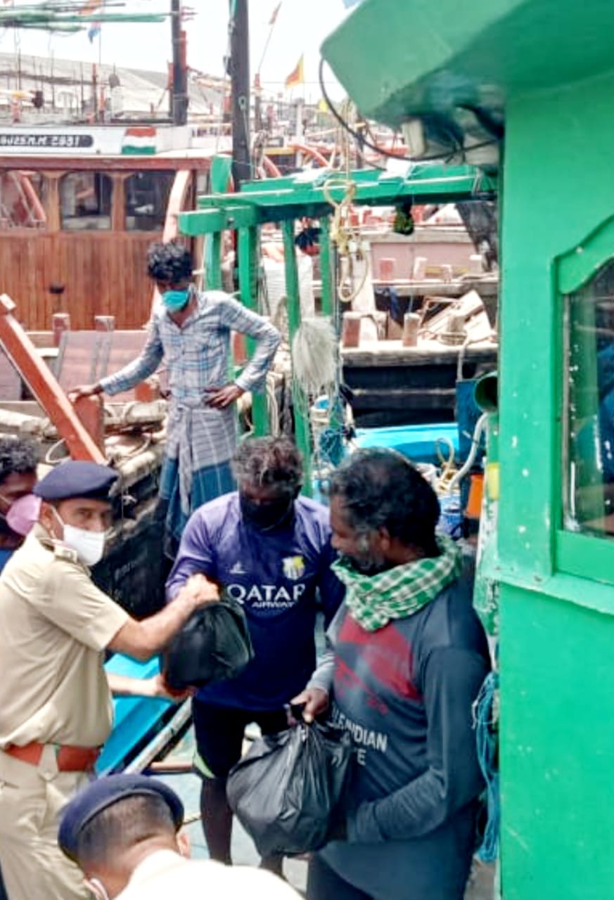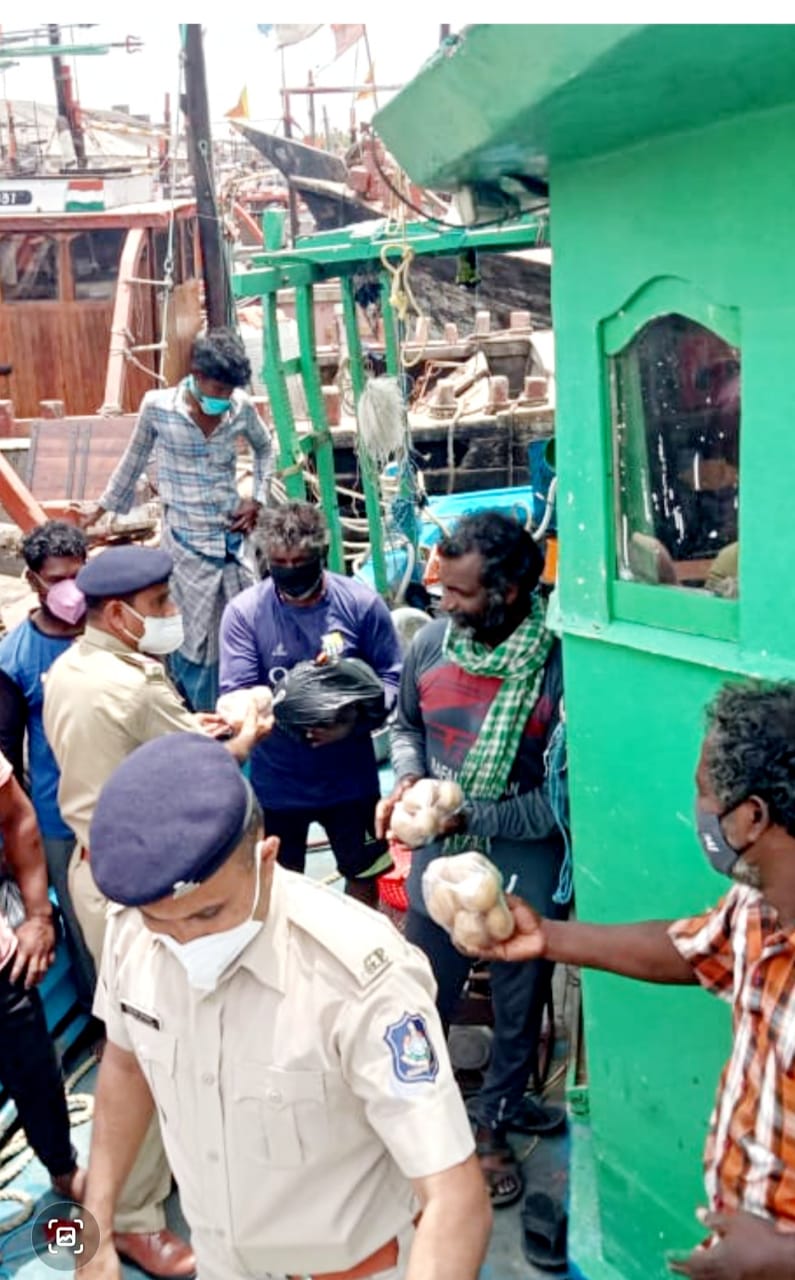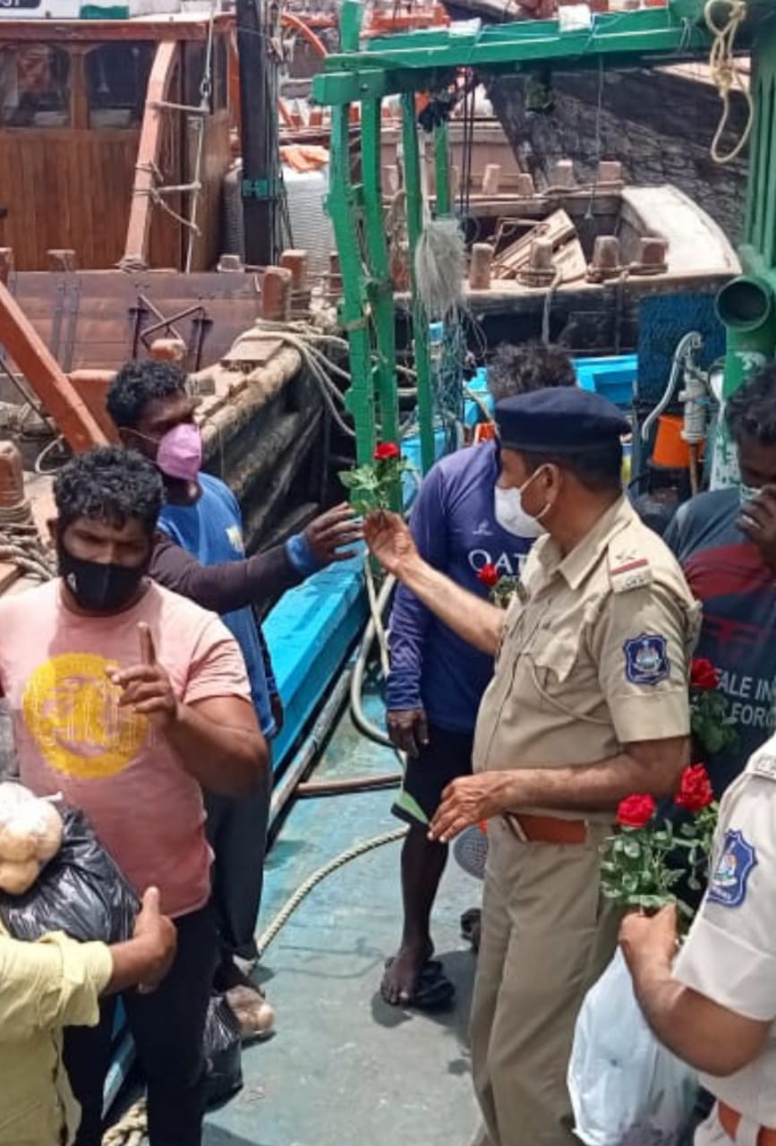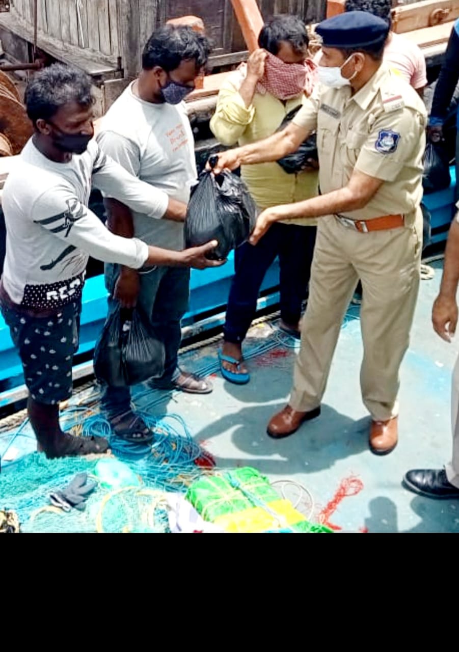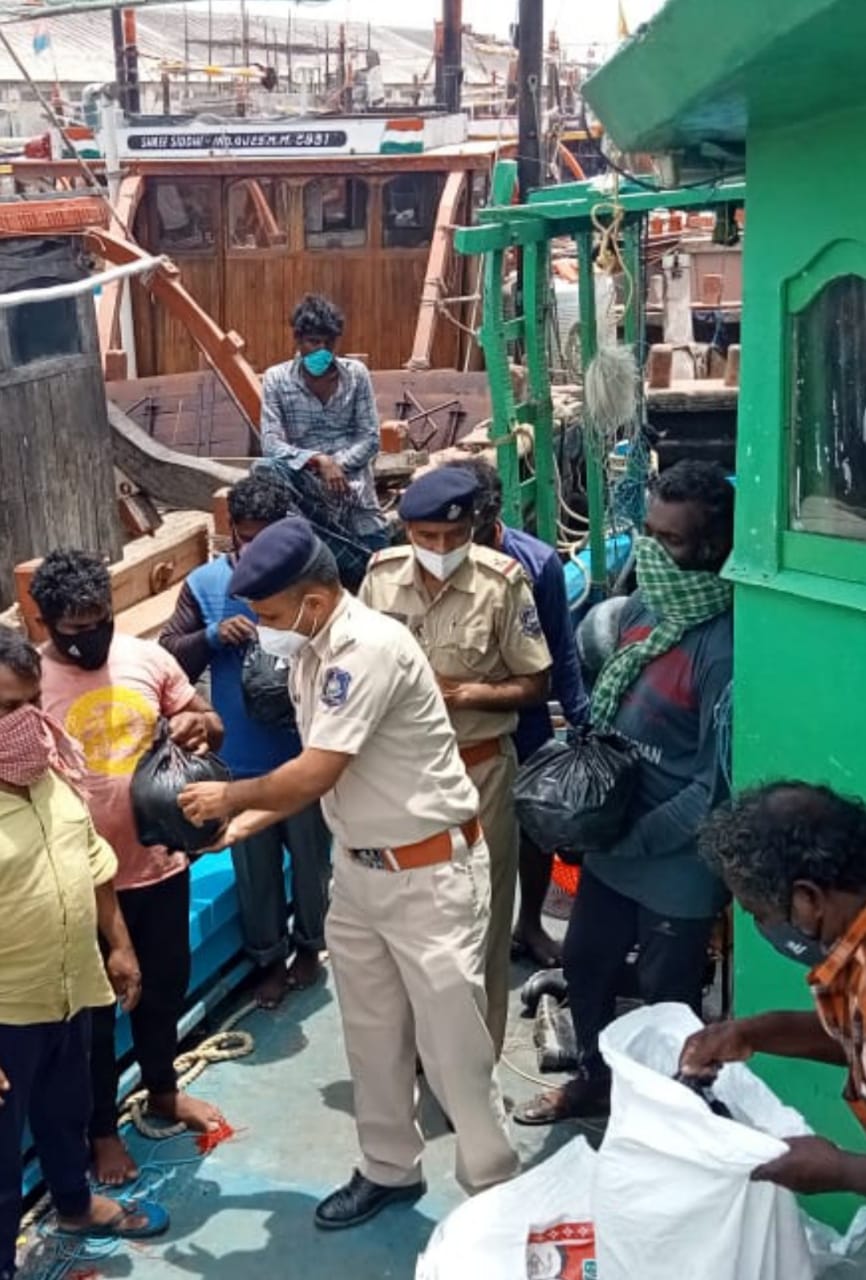 તામિલનાડુ રાજ્ય ની 8 બોટ ના સલામતી હેતુ થી પોરબંદર પોર્ટ પર આવી હતી બોટ તમામ માછીમારો ને પોરબંદર એસ ઓ જી પોલીસે રાશન કીટ વિતરણ કર્યું